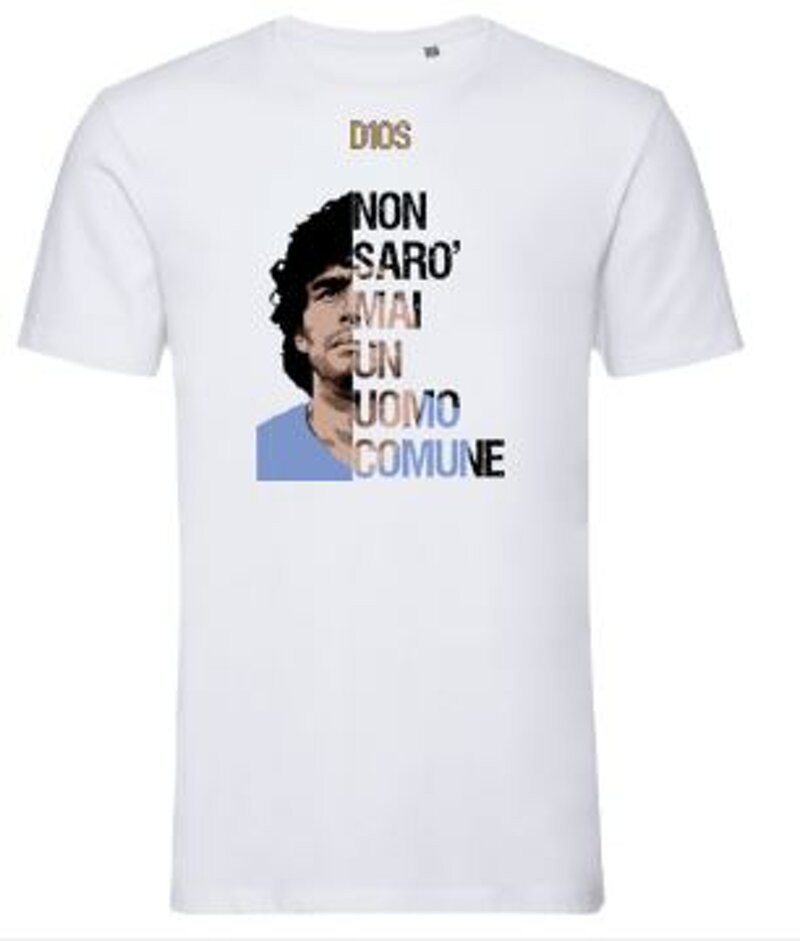 Scopri la nostra esclusiva maglia dedicata a Maradona, un vero tributo a uno dei più grandi calciatori di tutti i tempi. Questa maglia è caratterizzata da un gioco di grafica unico, che riporta una delle frasi più celebri pronunciate da Diego in un'intervista con Gianni Minà. La frase, che esprime la passione e l'amore per il calcio, è stampata con un design accattivante che cattura l'essenza del suo spirito. Indossare questa maglia significa portare con sé non solo un pezzo di storia, ma anche un simbolo di dedizione e talento. Realizzata con materiali di alta qualità, è perfetta per ogni tifoso che desidera celebrare l'eredità di Maradona. Disponibile in diverse taglie, questa maglia è un must-have per chiunque voglia onorare il mito e sentirsi parte della sua leggenda. Non perdere l'opportunità di aggiungere questo pezzo esclusivo alla tua collezione. Ordina la tua maglia Maradona oggi stesso e fai parte di questa celebrazione del calcio e della cultura sportiva!