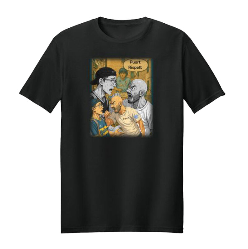 MAGLIA DEDICATA A EUGENIO, RAGAZZO DEI QUARTIERI SPAGNOLI CHE CON GIUSTA RAGIONE HA PRETESO RISPETTO PER IL QUARTIERE A SEGUITO DI COMPORTAMENTI SCORRETTI DA PARTE DI UN GRUPPO DI MARANZA VENUTI A NAPOLI.