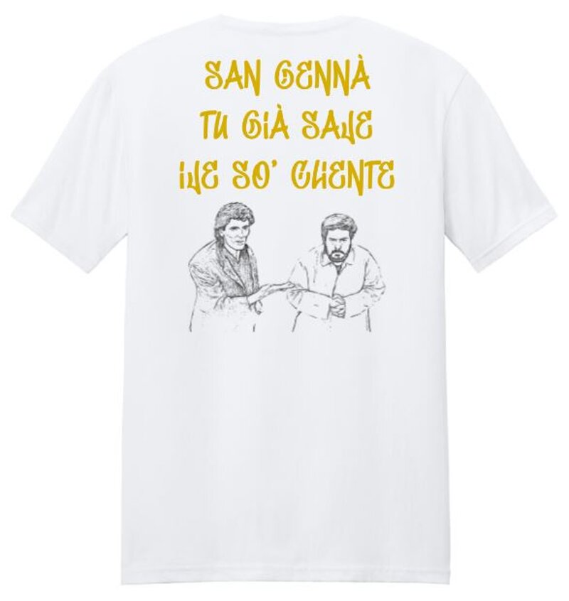 Maglia dedicata a San Gennaro, come al solito con l'umorismo partenopeo, dove si mischia il sacro e il profano.